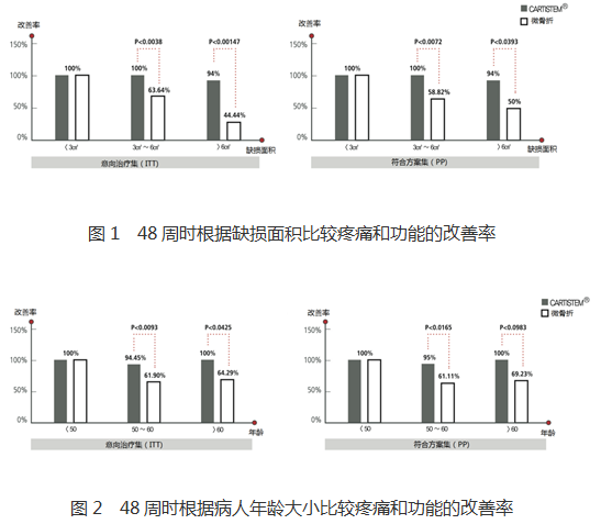与微骨折组相比,相同时间段内,CARTISTEM治疗组在手术后48ICRS等级改善(定义:ICRS等级改善至少一个等级具有显著的优势