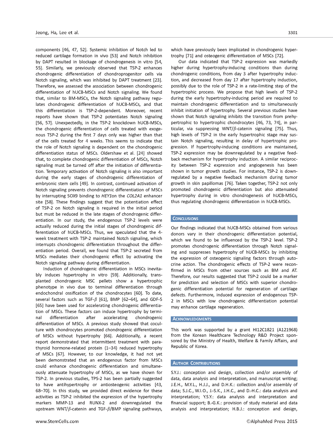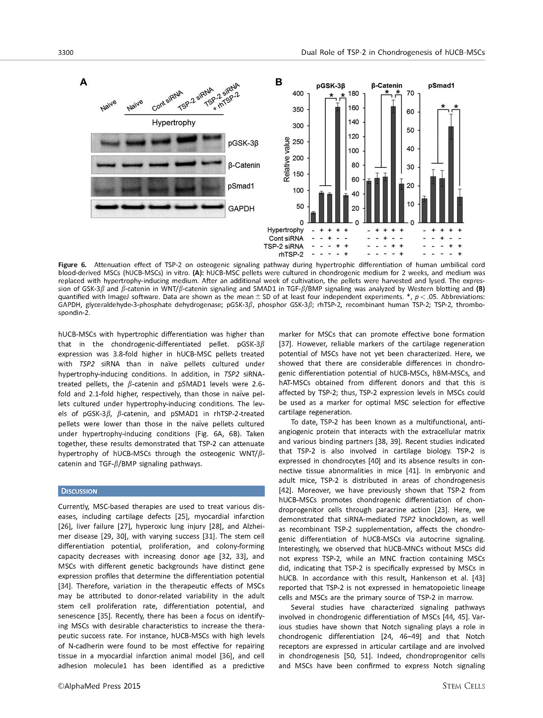 TSP-2的旁分泌作用决定人脐血间充质干细胞向软骨细胞的分化潜能并抑制其肥大成熟